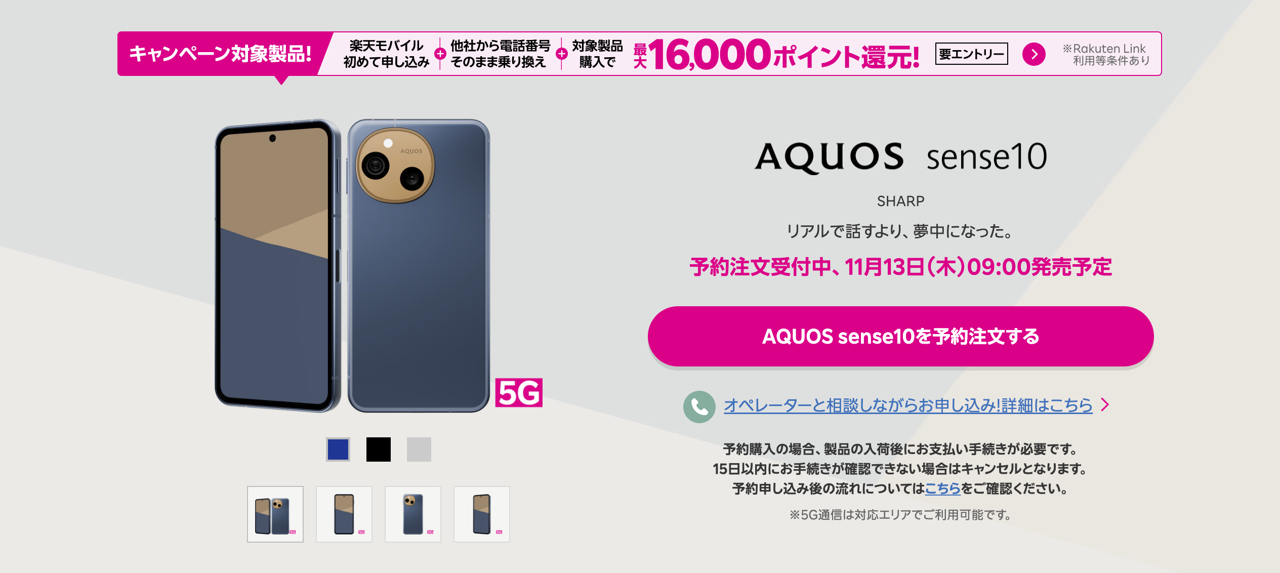 AQUOS sense10が楽天モバイルで11月13日に発売となります。